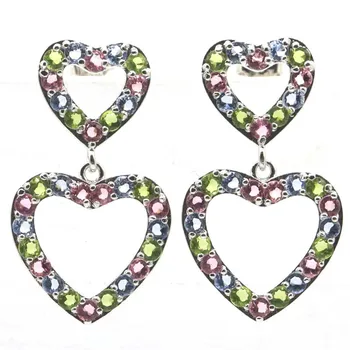 Special Offer 35 × 20ミリメートルマルチカラー作成トルマリンタンザナイトペリドットジュエリーメイキングシルバーイヤリング Discount 40% Today!