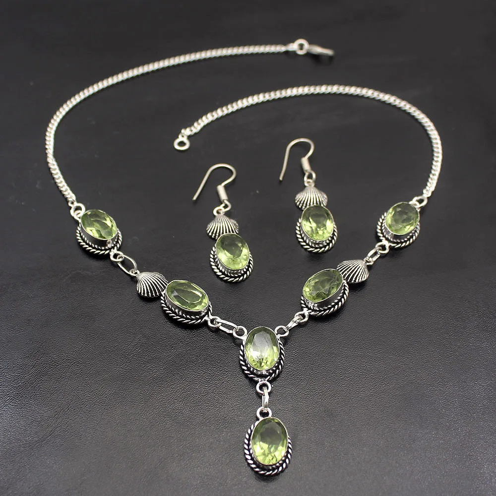 . (60% Off) 激安 Hermosa 49% オフミックス色ペリドット Citrinee Topazz シルバーカラーのイヤリングネックレスジュエリーセット女性のプレゼント送料無料 オンライン 価格.