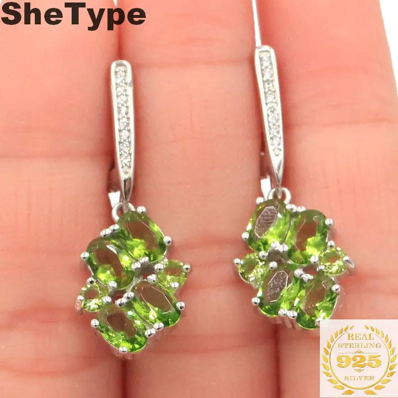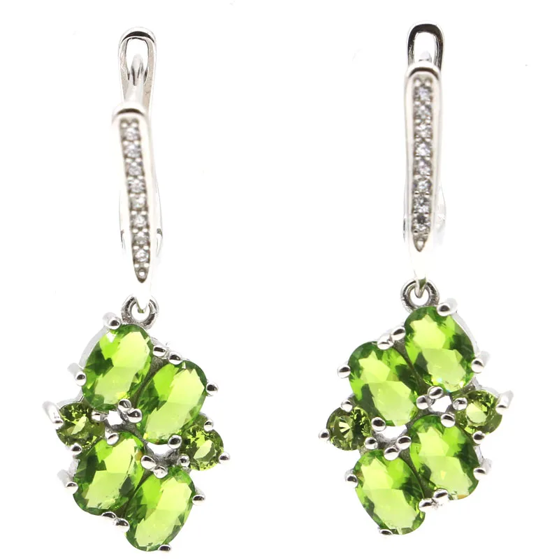 . (15% Off) 激安 32 × 11 ミリメートル 2019 ホット販売 6.09 グラム作成グリーンペリドット CZ 婚約 925 固体スターリングシルバーイヤリング オンライン 価格.
