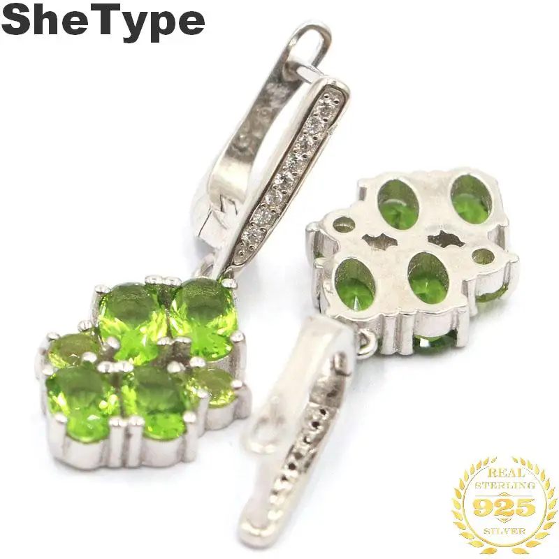 Special Offer 32 × 11 ミリメートル 2019 ホット販売 6.09 グラム作成グリーンペリドット CZ 婚約 925 固体スターリングシルバーイヤリング Discount 15% Today!