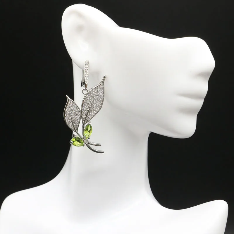Product Name: 49 × 26 ミリメートルの蝶の形作成グリーンペリドットホワイトcz女性のシルバーイヤリング