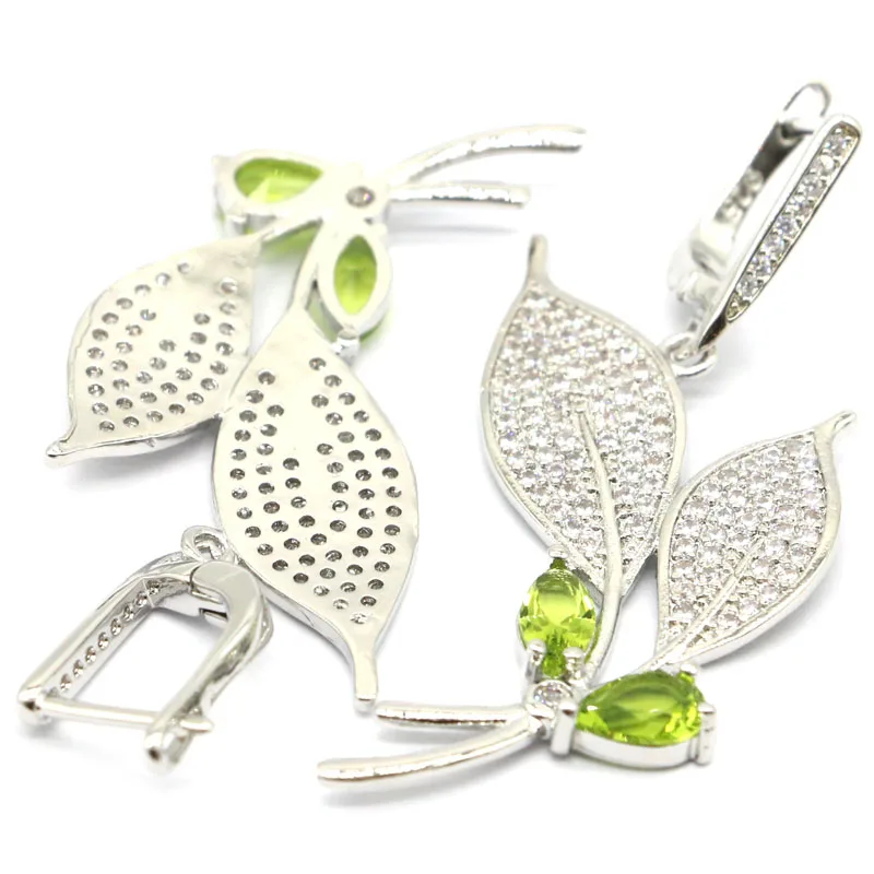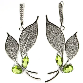 Special Offer 49 × 26 ミリメートルの蝶の形作成グリーンペリドットホワイトcz女性のシルバーイヤリング Discount 40% Today!