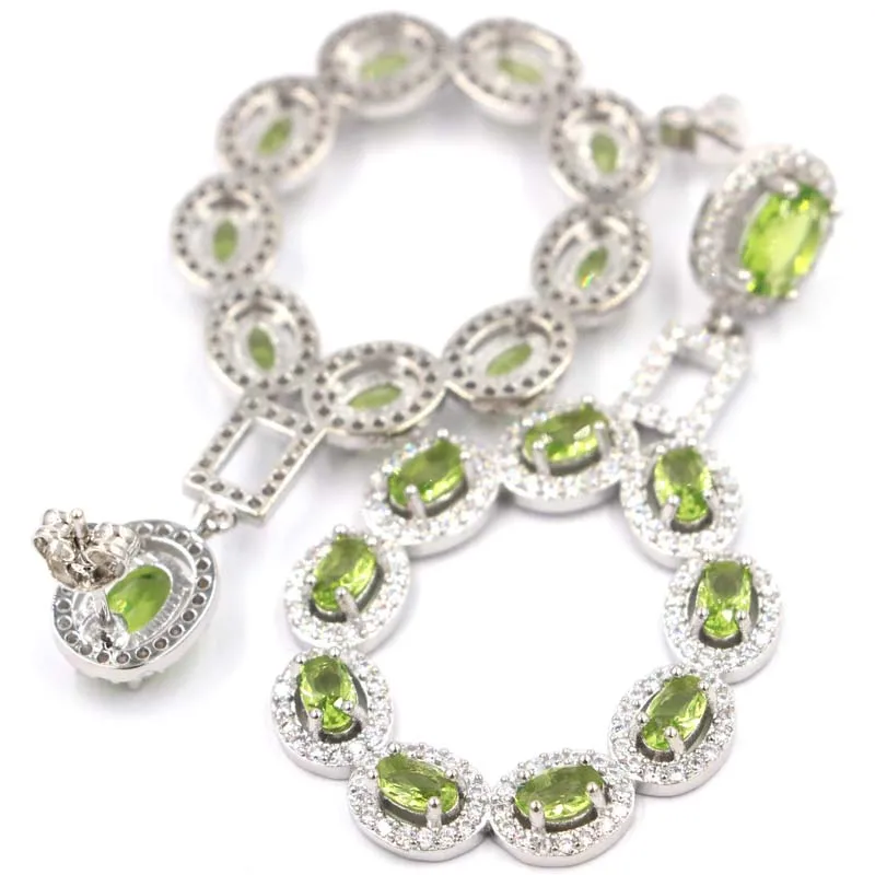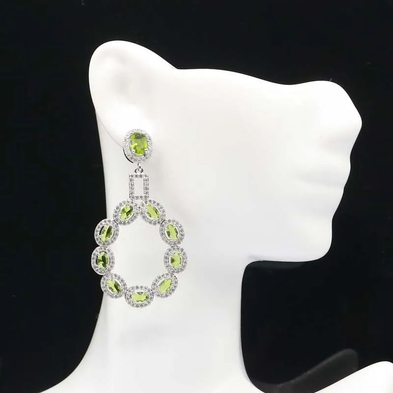Special Offer 52 × 28 ミリメートル 2020 新設計された作成グリーンペリドットホワイトczギフト姉妹シルバーイヤリング Discount 40% Today!