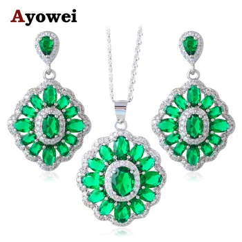 Special Offer ので高級デザインスーパーサプライヤーシルバー刻印ペリドットファッションジュエリーセットグリーン Zriconia イヤリングネックレス JS659A Discount 18% Today!