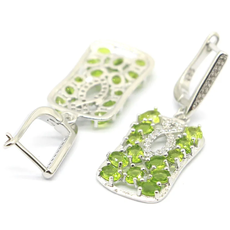 Special Offer 38x14 ミリメートルロマンチックな作成グリーンペリドットホワイトcz女性のシルバーイヤリング Discount 40% Today!