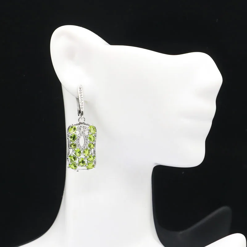 . (40% Off) 激安 38x14 ミリメートルロマンチックな作成グリーンペリドットホワイトcz女性のシルバーイヤリング オンライン 価格.