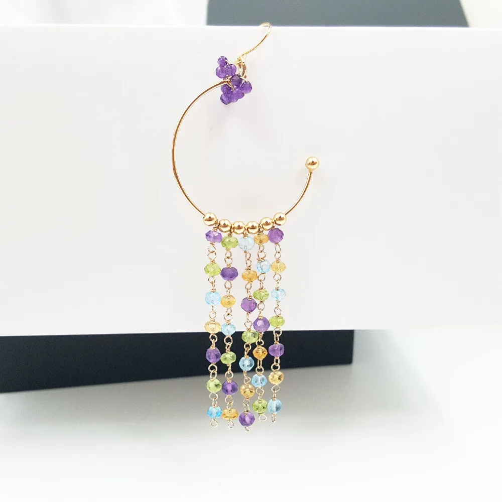 Special Offer Liijiユニークな天然石ペリドット、トパーズ、アメジスト、シトリン925スターリングシルバーゴールドカラーイヤリング1個 Discount 17% Today!