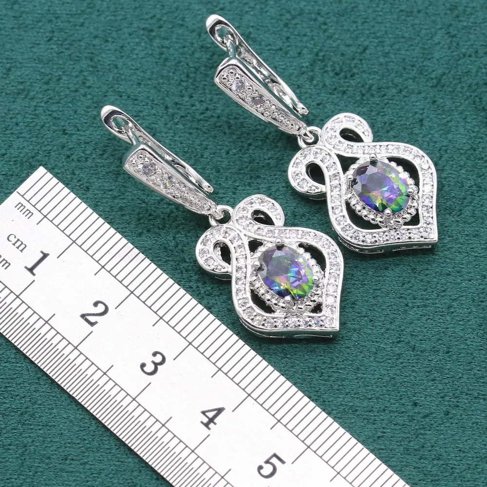 Special Offer 神秘的な925スターリングシルバージュエリーセット女性結婚式の多色クリスタルブレスレットイヤリングネックレスペンダントリング Discount 50% Today!
