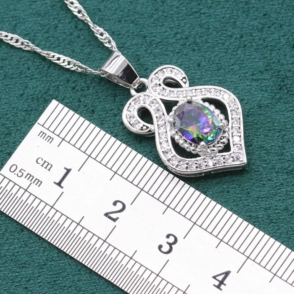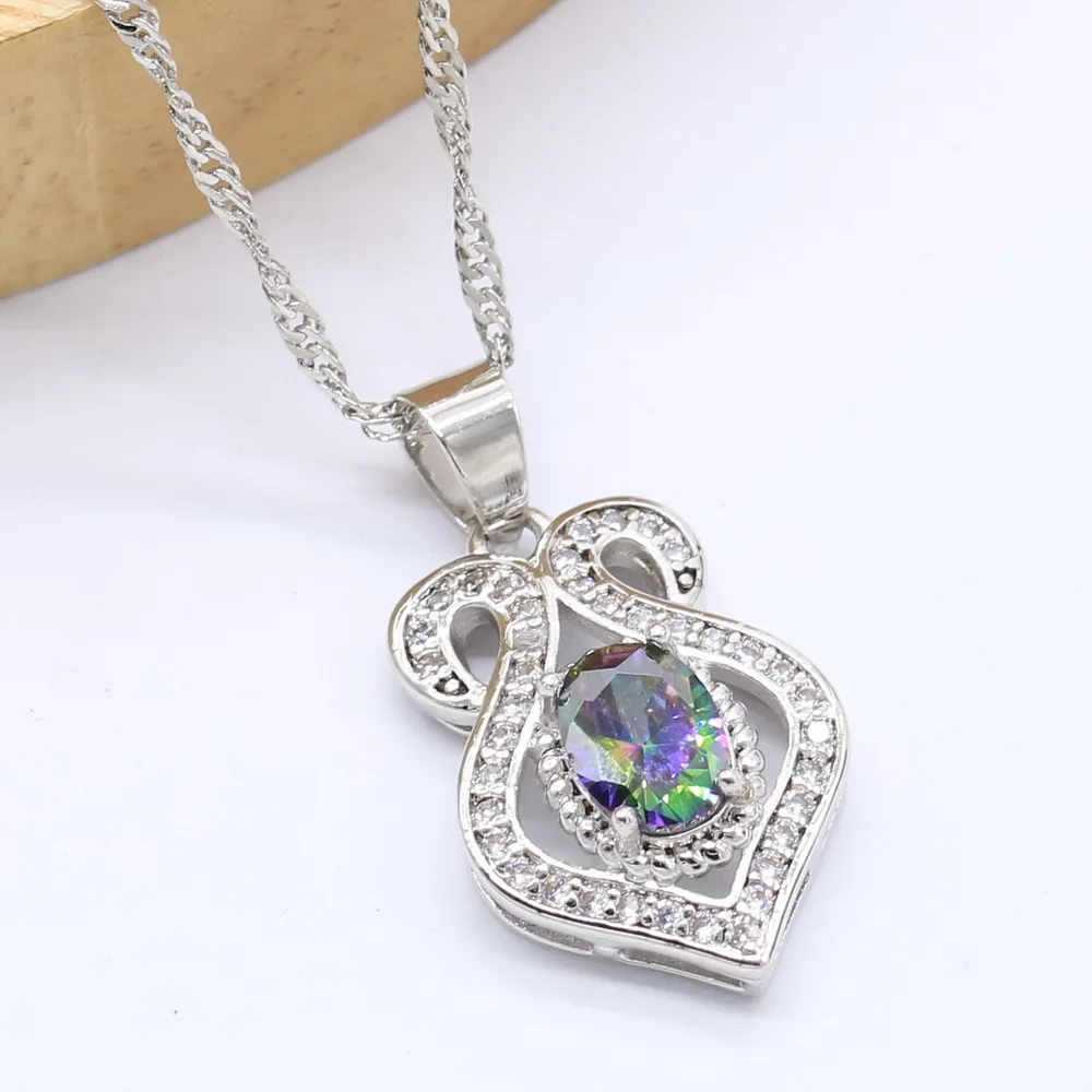 . (50% Off) 安い 神秘的な925スターリングシルバージュエリーセット女性結婚式の多色クリスタルブレスレットイヤリングネックレスペンダントリング 通販 価格.