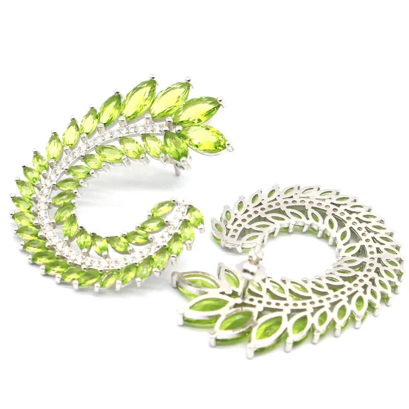 Special Offer 37 × 29 ミリメートルデラックス 9.3 グラム作成グリーンペリドットホワイト CZ 女性の 925 ソリッドスターリングシルバーイヤリング Discount 0% Today!