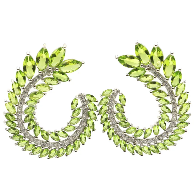 . (0% Off) 安い 37 × 29 ミリメートルデラックス 9.3 グラム作成グリーンペリドットホワイト CZ 女性の 925 ソリッドスターリングシルバーイヤリング 通販 価格.
