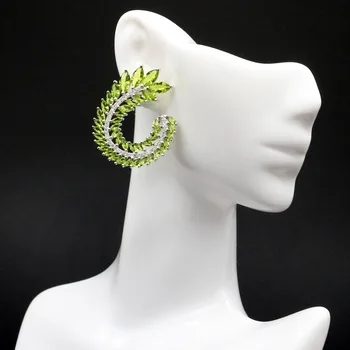 Product Name: 37 × 29 ミリメートルデラックス 9.3 グラム作成グリーンペリドットホワイト CZ 女性の 925 ソリッドスターリングシルバーイヤリング