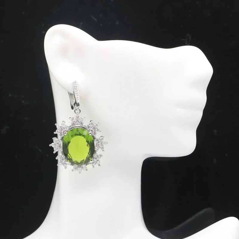 . (40% Off) 買取 45 × 27 ミリメートル魅惑作成グリーンペリドットホワイトcz女性のシルバーイヤリング 通販 価格.