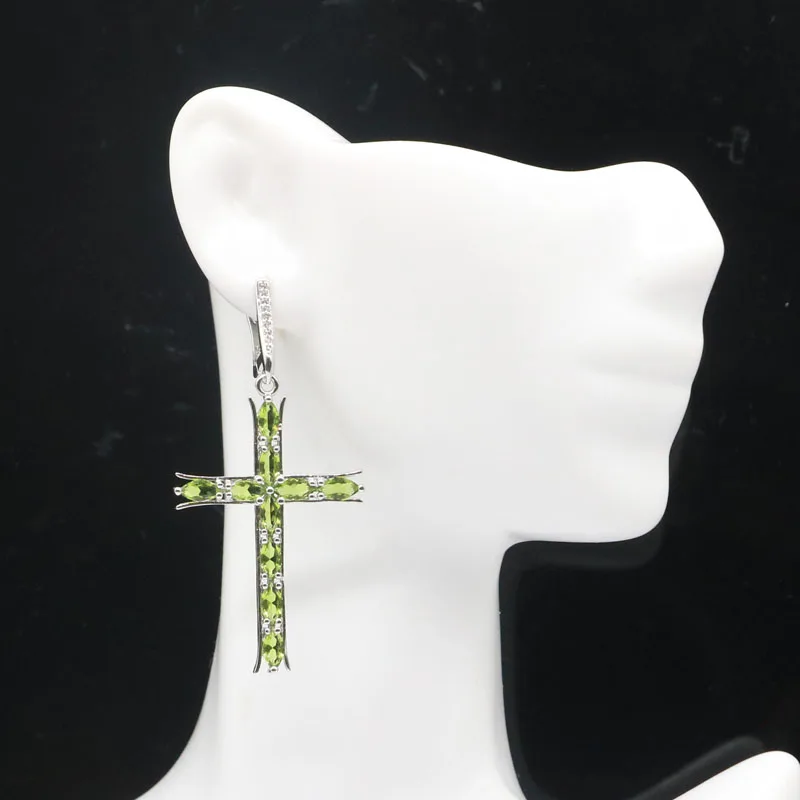 Special Offer 55x27ミリメートルデラックスロングクロス作成グリーンペリドットホワイトcz女性のためのシルバーイヤリング Discount 40% Today!