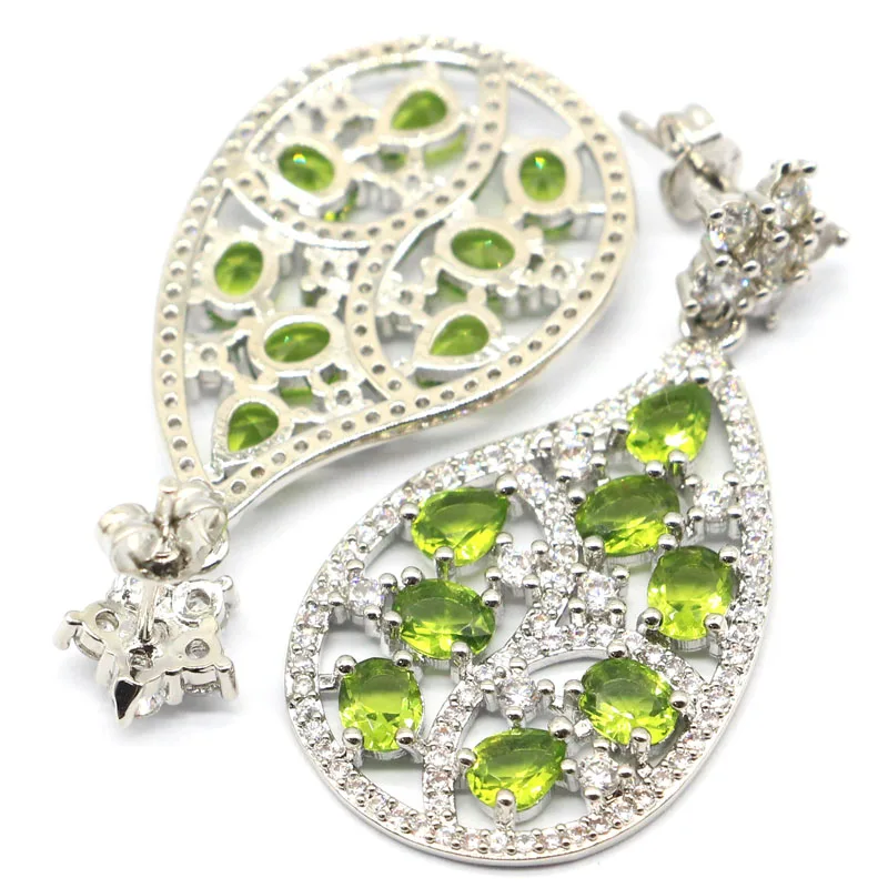 Special Offer 41 × 22ミリメートルスーパービッグヨーロッパデザイン作成グリーンペリドットブライトジルコン母シルバーイヤリング Discount 40% Today!