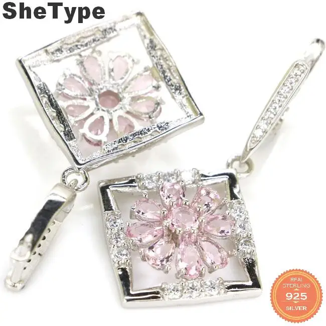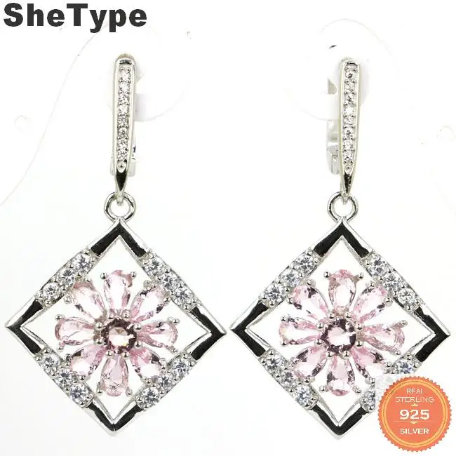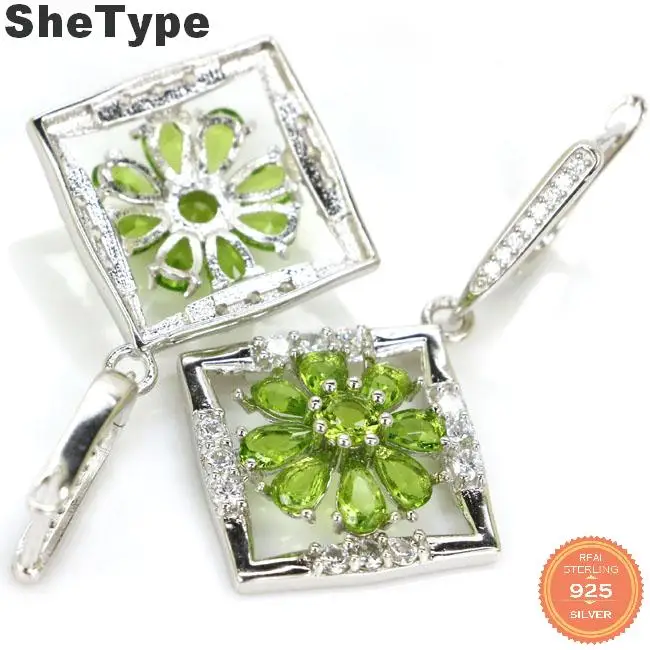 . (15% Off) 激安 42 × 24 ミリメートルエレガントな 7.7 グラム作成グリーンペリドットピンククンツァイトcz女性のための 925 スターリングシルバーイヤリング オンライン 価格.