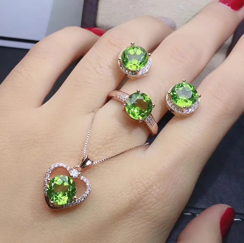 Special Offer KJJEAXCMY ファインジュエリー天然ペリドット 925 スターリングシルバー女性ペンダントネックレスチェーンイヤリングリングセットサポートテスト美しい Discount 28% Today!