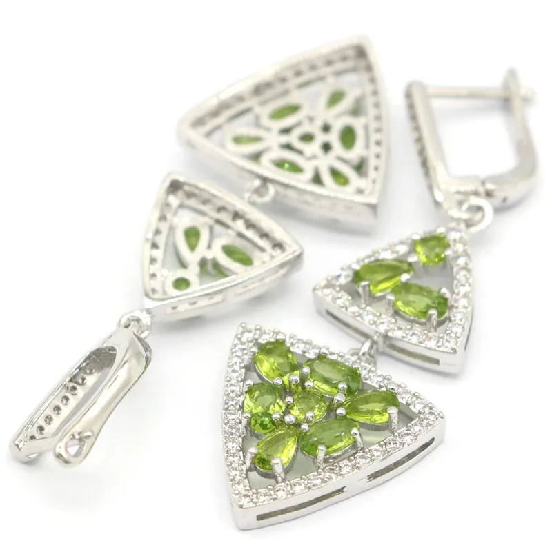 Special Offer 54 × 19ミリメートルロングtrangle形状作成グリーンペリドットホワイトジルコン女性のためのギフトの結婚式のシルバーイヤリング Discount 40% Today!