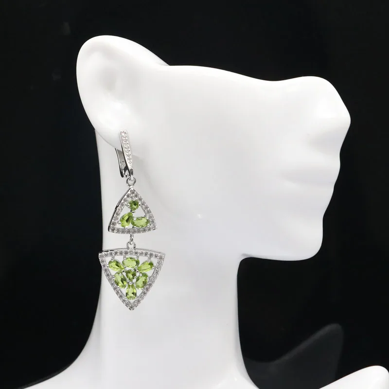 . (40% Off) 買取 54 × 19ミリメートルロングtrangle形状作成グリーンペリドットホワイトジルコン女性のためのギフトの結婚式のシルバーイヤリング 通販 価格.
