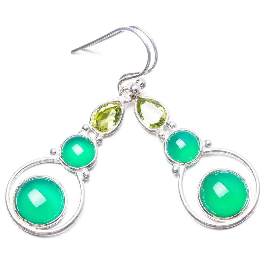 Special Offer ナチュラルクリソプレーズとペリドット手作りユニークな925スターリングシルバーイヤリング1.75 "Y3583 Discount 0% Today!
